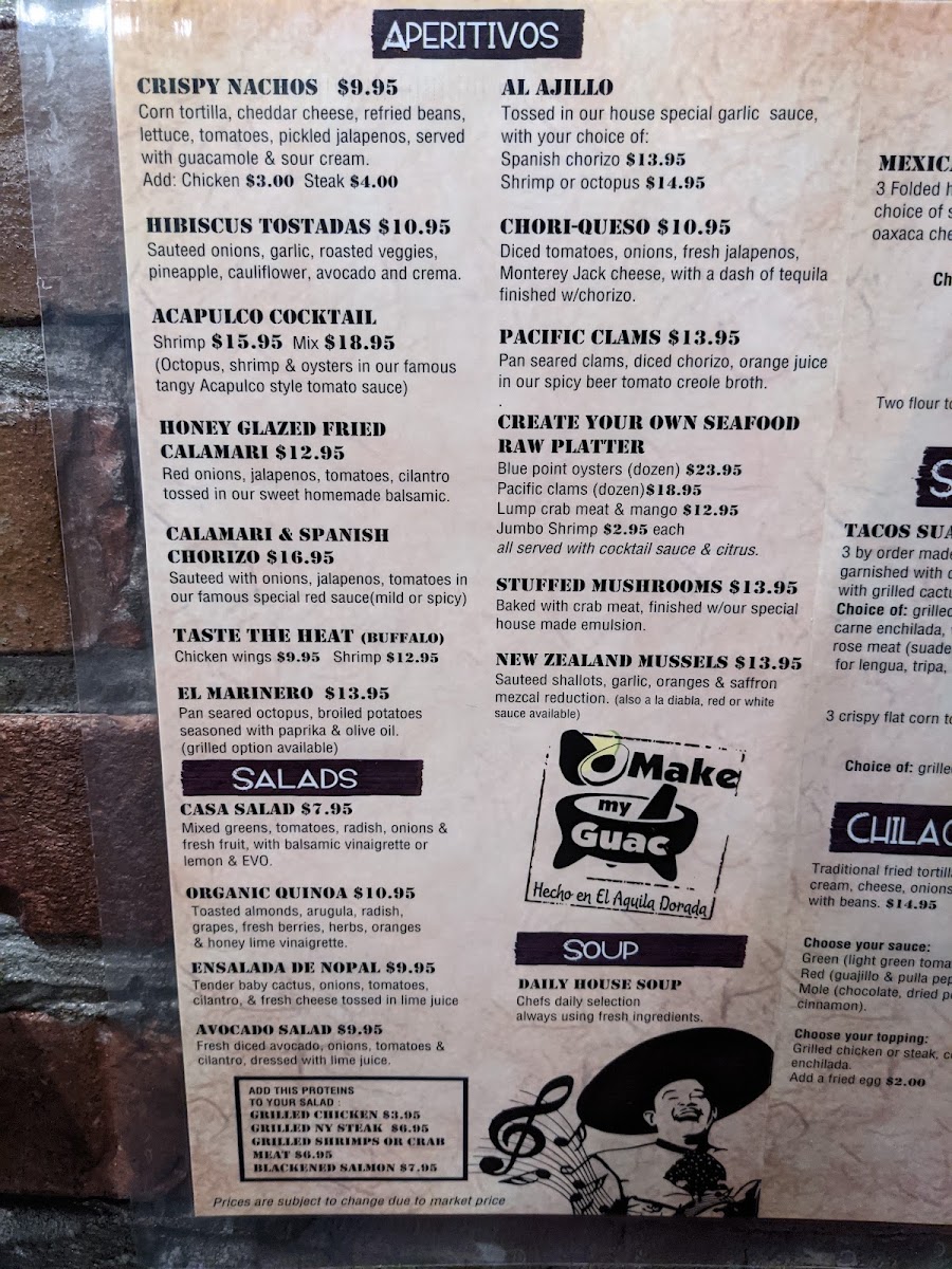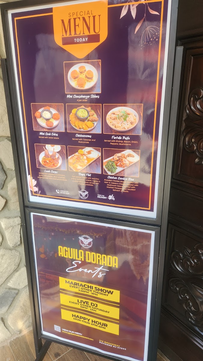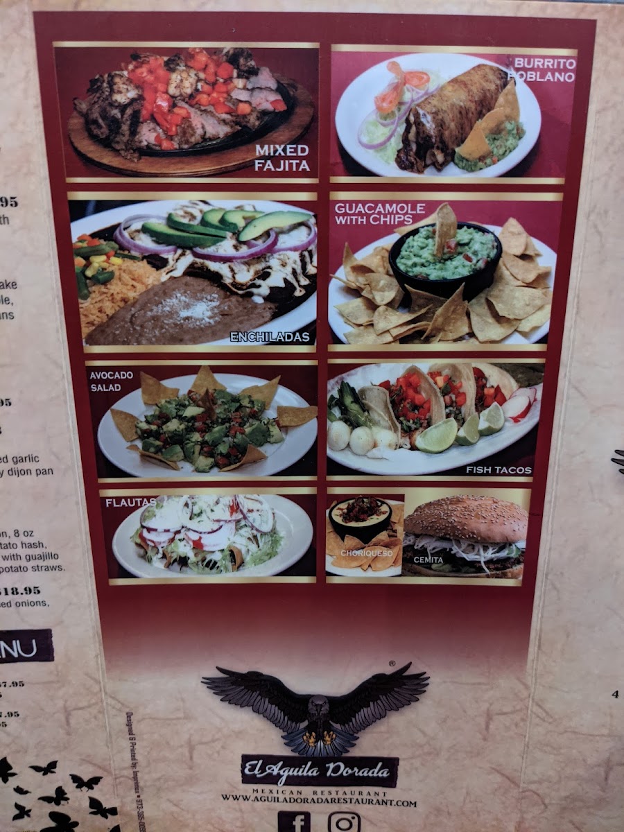 The El Aguila Dorada Menu offers a vibrant and flavorful selection that will transport your taste buds straight to Mexico. Located in the heart of Bayonne, NJ, this spot is perfect for anyone craving authentic Mexican dishes. From sizzling fajitas to mouthwatering tacos, each plate is crafted with fresh ingredients and traditional spices. The menu has something for everyone - whether you're in the mood for a hearty burrito, a savory enchilada, or a light, refreshing salad. Don’t forget to try their signature drinks and perfect pairings that will make your meal even more special. Whether you’re here for a casual meal with friends or a family gathering, El Aguila Dorada brings together all the flavors of Mexico in a way that’s hard to beat.